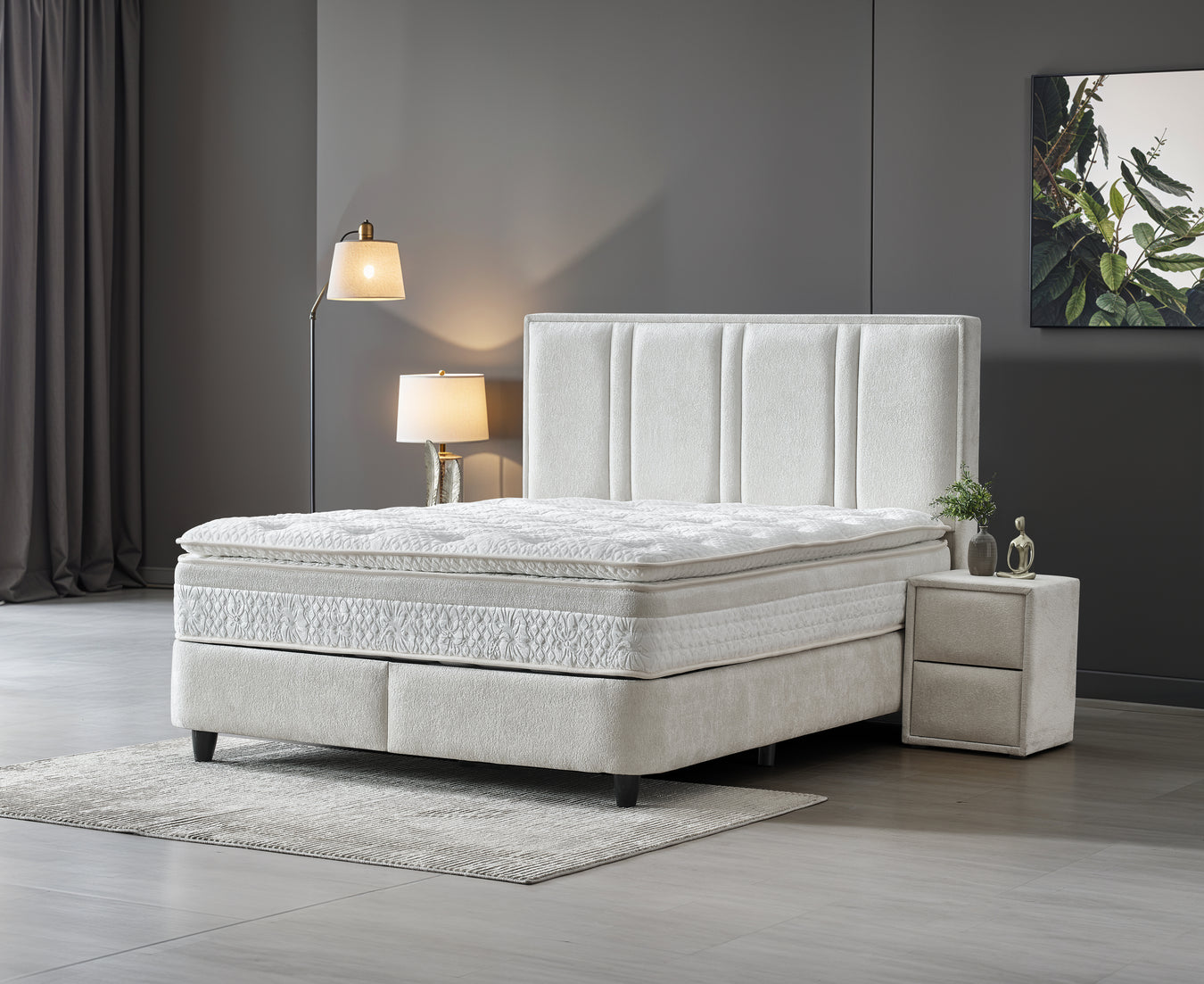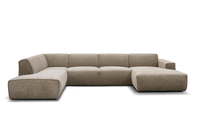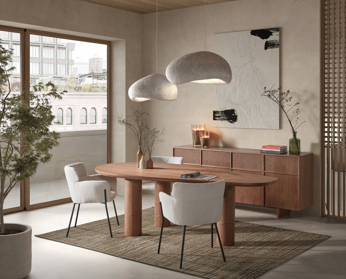 Un salon aux tons doux où le canapé généreux invite à la détente. Les tables blanches au design épuré apportent une touche contemporaine. Un look lumineux, chaleureux et parfaitement équilibré.