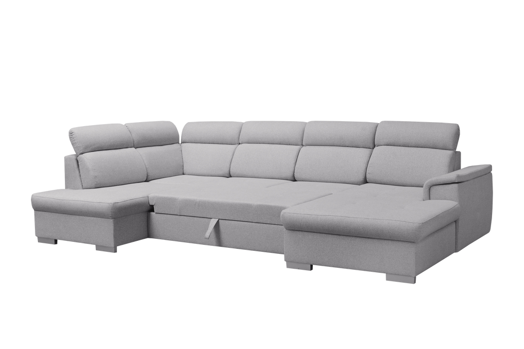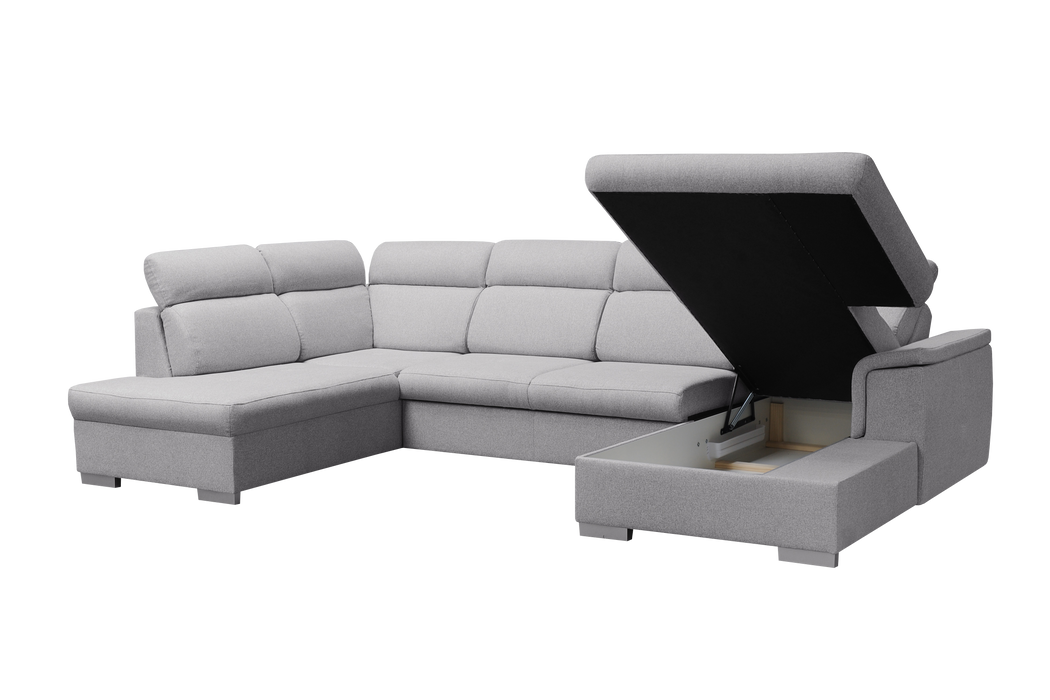 Le salon en U Lyon en tissu beige allie élégance et praticité pour un intérieur moderne et fonctionnel. Convertible en lit, il offre un couchage d'appoint confortable tout en disposant d’un coffre de rangement intégré pour optimiser l’espace. Son design spacieux et ses assises généreuses en font un choix idéal pour les moments de détente en famille ou entre amis.