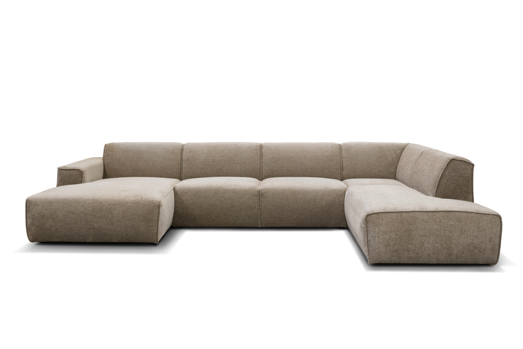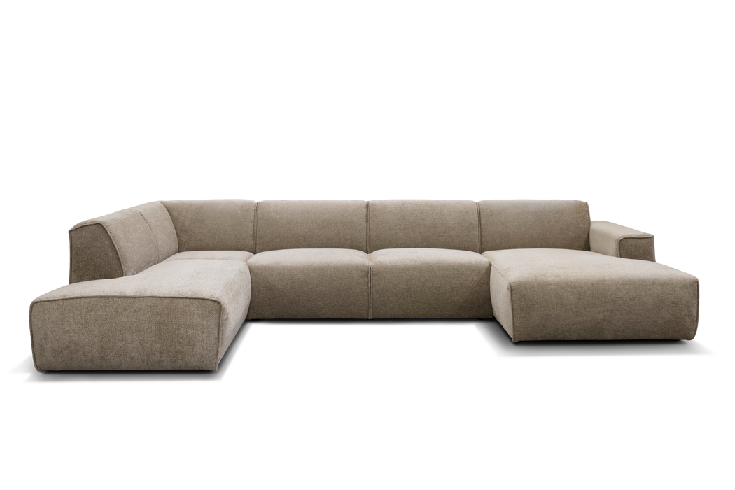 Le salon en U Pado en tissu beige séduit par son design moderne et épuré, idéal pour créer une ambiance chaleureuse et accueillante. Sa teinte naturelle apporte une touche de douceur, tout en s'harmonisant facilement avec divers styles de décoration. Spacieux et confortable, il offre un espace généreux pour se détendre et profiter de moments conviviaux en famille ou entre amis.