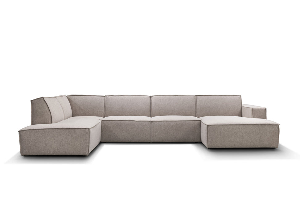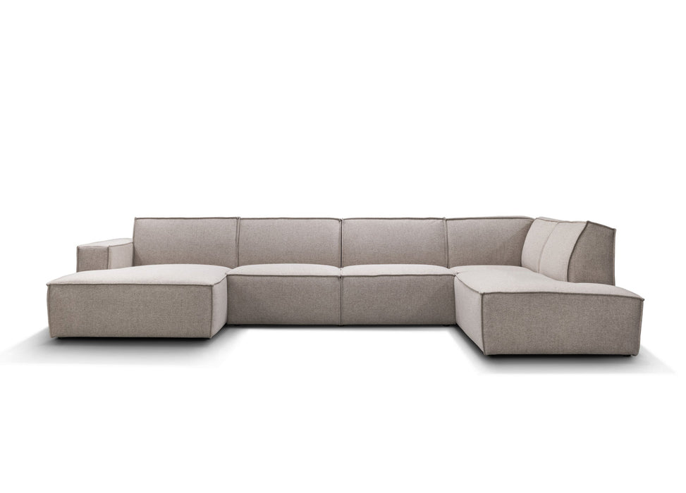 Le salon en U Espada en tissu beige séduit par son design minimaliste et ses lignes épurées, apportant une touche de modernité et d'élégance à votre intérieur. Sa teinte douce et naturelle crée une ambiance chaleureuse et accueillante, idéale pour un espace de vie convivial. Spacieux et confortable, il offre un cadre parfait pour se détendre en famille ou recevoir des invités