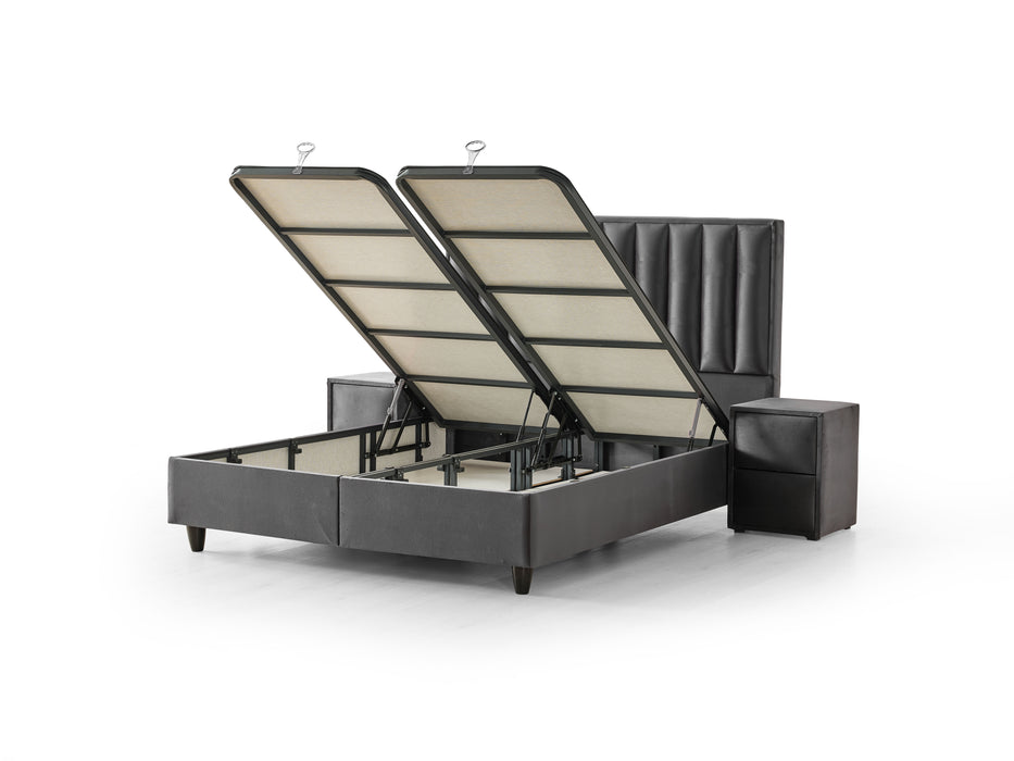 Le boxspring Perry en tissu beige allie élégance et praticité avec son design épuré et son grand espace de rangement intégré. Son matelas haut de gamme garantit un confort optimal pour des nuits paisibles et réparatrices. Idéal pour une chambre moderne, il offre une solution sophistiquée pour optimiser l’espace avec style.