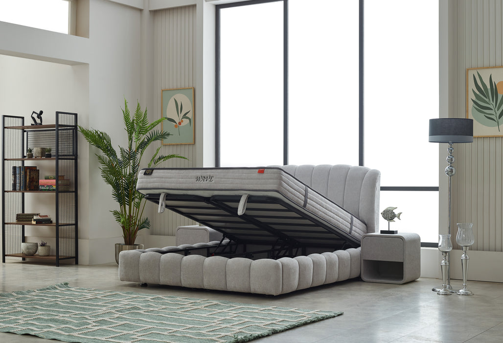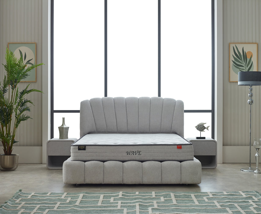 Le boxspring Wave, c’est l’élégance qui s’élève ! Avec sa tête de lit en forme de vague, il ajoute une touche de style unique à votre chambre. Son matelas inclus vous garantit un confort exceptionnel pour des nuits paisibles et reposantes. Le coffre de rangement intégré permet de garder vos affaires à portée de main tout en restant bien ordonnées. Choisissez le Wave, et laissez-vous emporter par un confort qui vous élève au septième ciel !