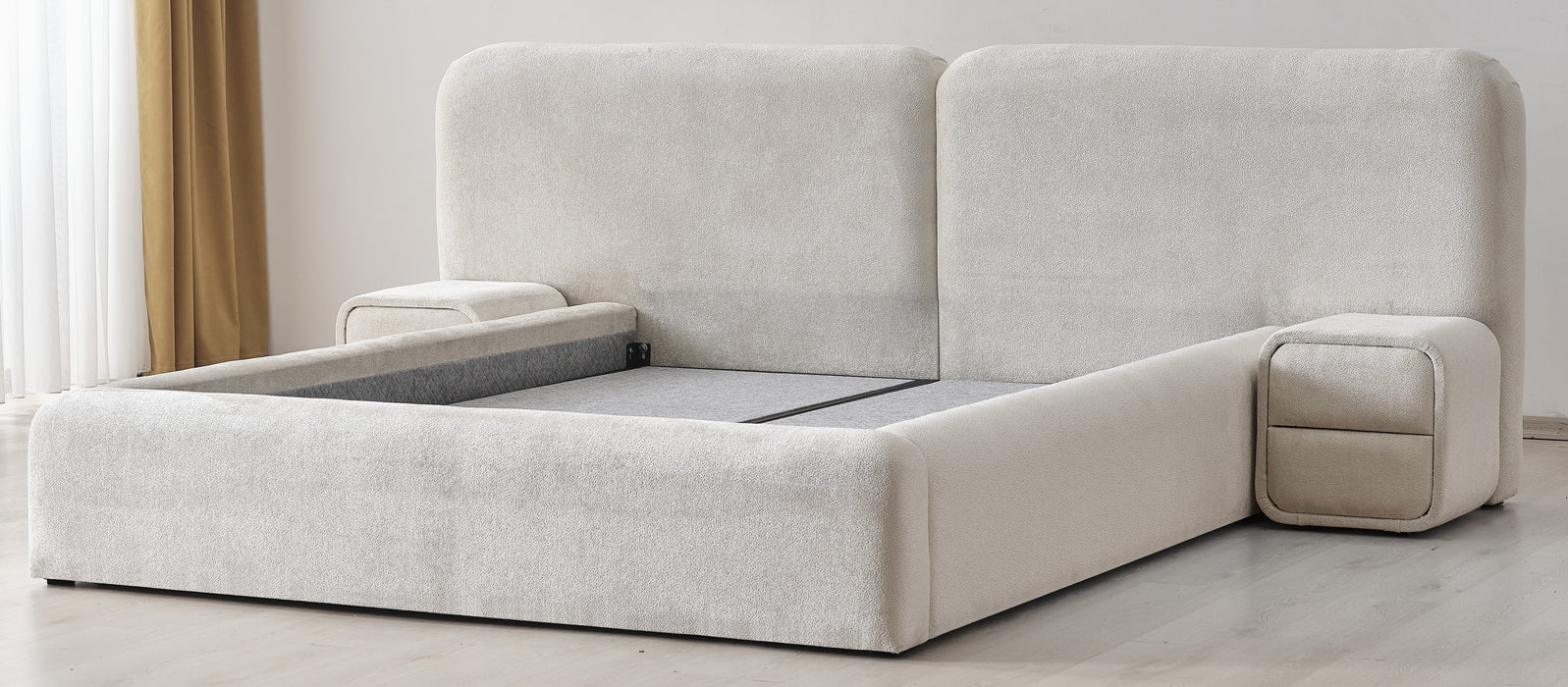 Reference Mykonos avec matelas et coffre de rangement + 2 chevets
